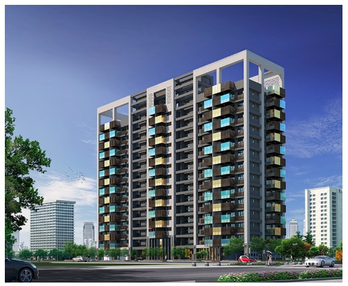 格局規劃:AB棟,一層各7戶共用兩電梯,二房/三房 (23~45坪),178戶住家,9戶店面