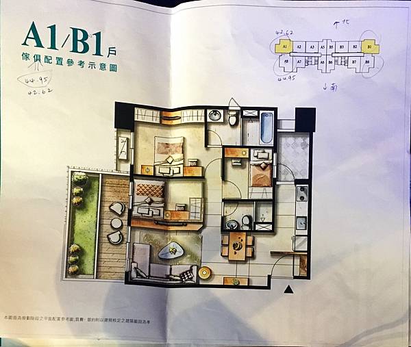 所有房型都有分有綠陽台(陽台有種樹的坪數較大),及無綠陽台